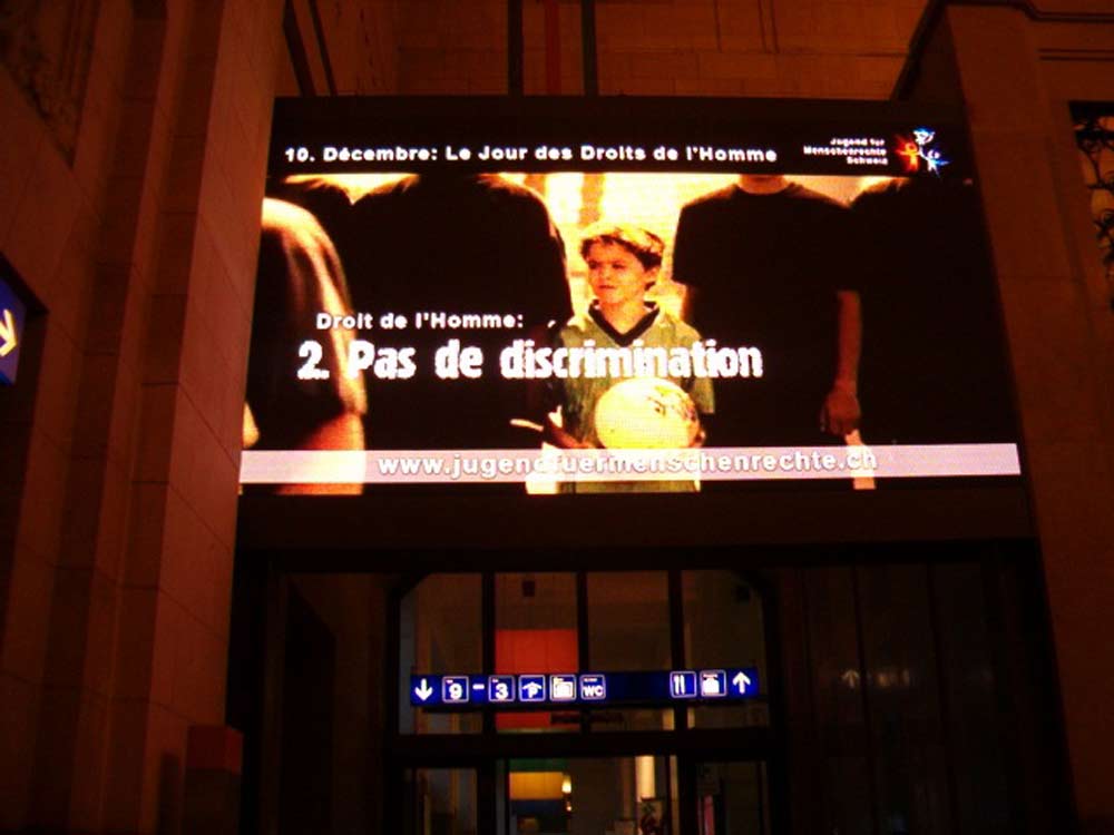 CNN transmitió dos de los anuncios de servicio público de Jóvenes por los Derechos Humanos Internacional, cada uno ilustrando uno de los 30 Artículos de la Declaración Universal de Derechos Humanos: “Todos Somos Iguales ante la Ley” y “Libertad de Pensamiento”. Los televidentes que ven uno de los anuncios de servicio público en CNN Internacional son dirigidos al sitio web: www.youthforhumanrights.org donde pueden descargar los treinta anuncios de servicio público y obtener materiales educativos efectivos para enseñar los derechos humanos en su área del mundo, donde sea que puedan estar.