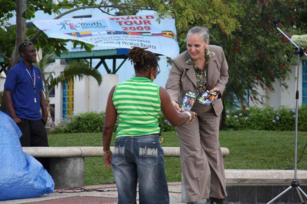 Muchos en la isla de Barbados ya reconocen el trabajo de Jóvenes por Los Derechos Humanos Internacional (YHRI) como resultado de ver sus anuncios de servicio público a nivel nacional de televisión. La oficina de YHRI de Barbados ahora representa el 84° país en unirse a YHRI. Conducido por el Reverendo Michael Steele, el equipo de la Gira Mundial 2009 tuvo una intensa agenda de reuniones previstas con funcionarios de alto nivel, además de eventos especiales para los jóvenes.