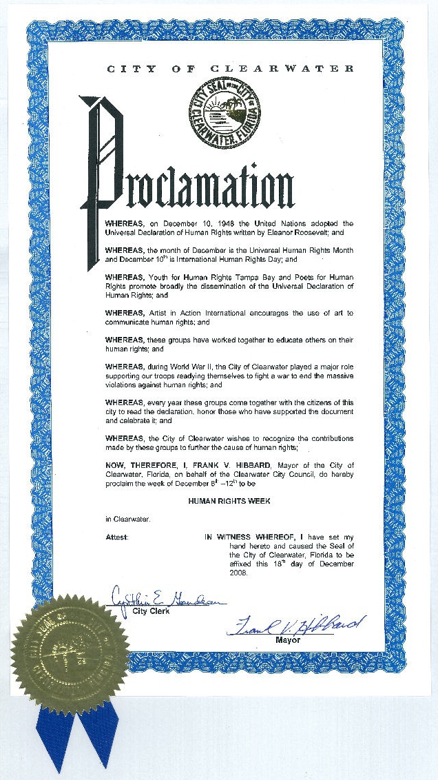 Funcionarios de diversos gobiernos, educadores, líderes religiosos y activistas de los derechos humanos reconocen el valor de la labor de Juventud por los Derechos Humanos Internacional. Por consiguiente, a continuación se muestran algunos de los muchos premios, proclamaciones y reconocimientos que ha recibido Juventud por los Derechos Humanos Internacional, por su trabajo humanitario de impulsar la causa de los derechos humanos a lo largo y ancho del mundo: